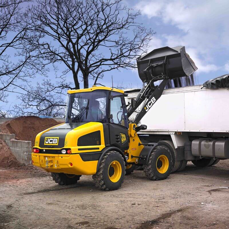 Mit 20 Km/H mit PKW-Führerschein Straßenüberführbar. Auf Wunsch können wir Ihnen den Radlader JCB 406 auch zu Ihrer Baustelle liefern.